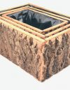 S/3 Oak Bark Rect Pot W/pl BROWN