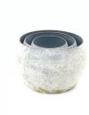 S/3 Metal Tall Round Pot W/hdl GREY WASH