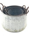 S/3 Metal Tall Round Pot W/hdl GREY WASH