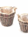 S/2 Wooden Round Pot W/p.lin BROWN
