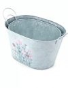 S/2 Oval Metal Planter W/hndls GREY